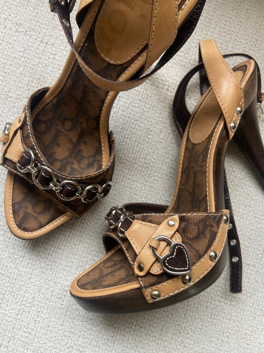 Christian Dior “Diorissimo” monogram heart lock canvas Clogs