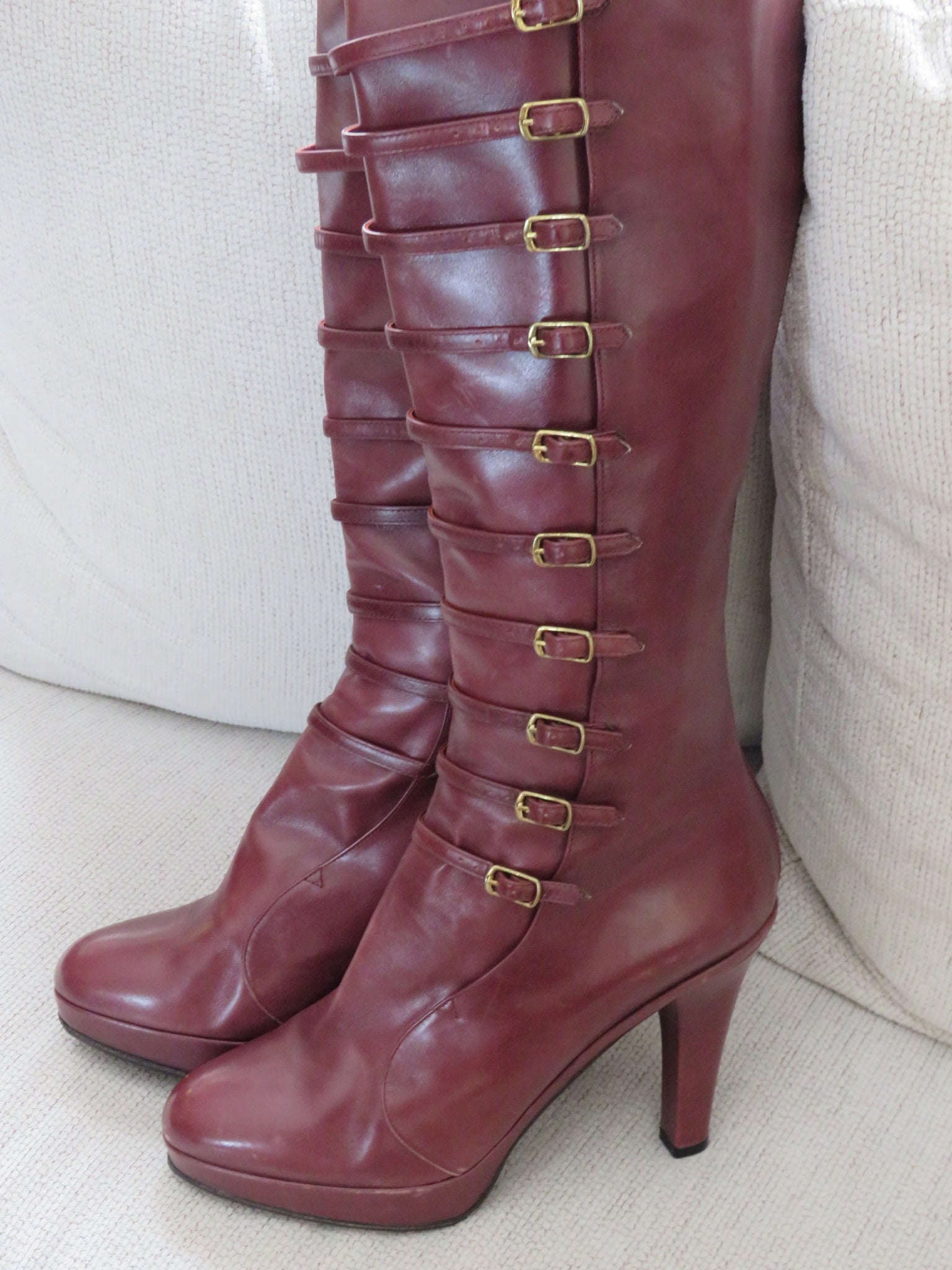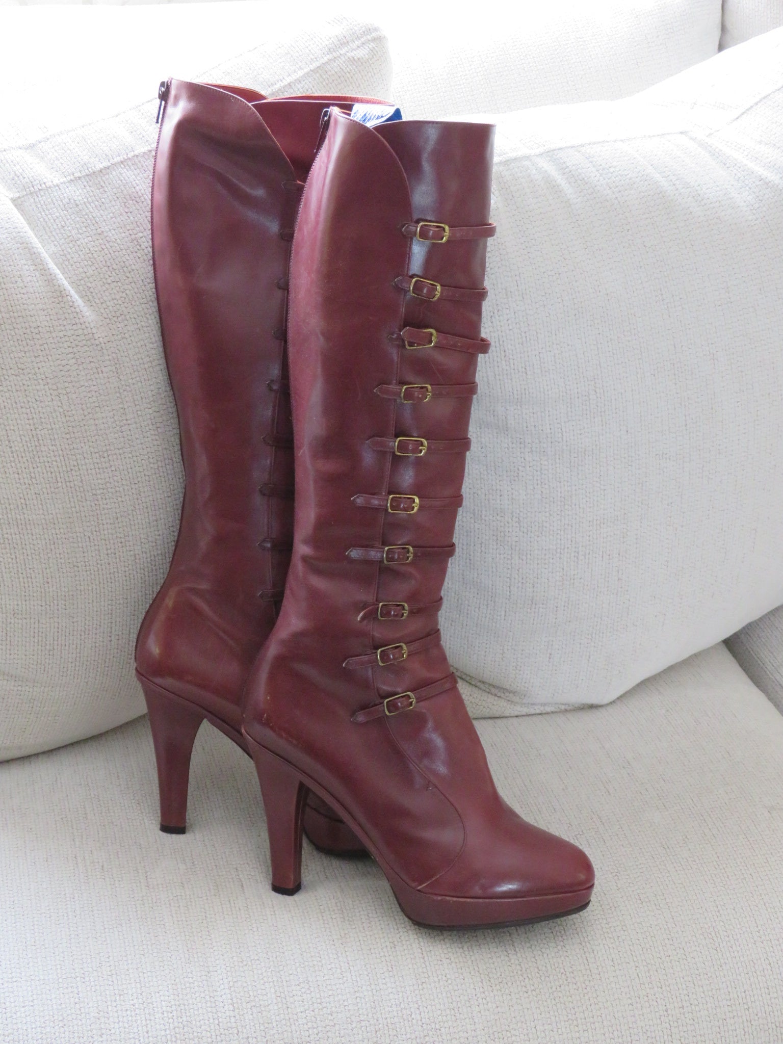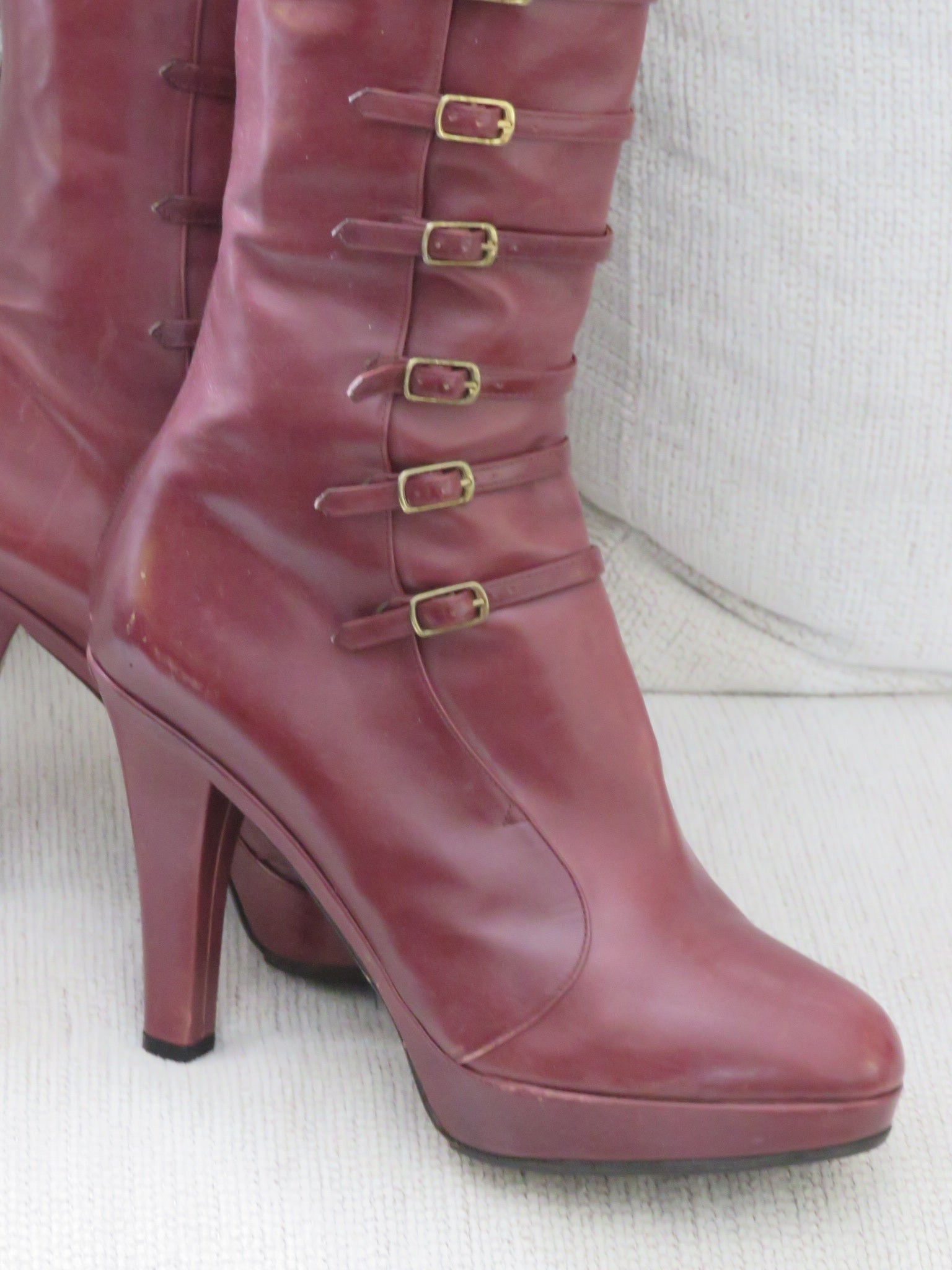 2007 Runway Marc Jacobs Burgundy lace up calf boot heels!