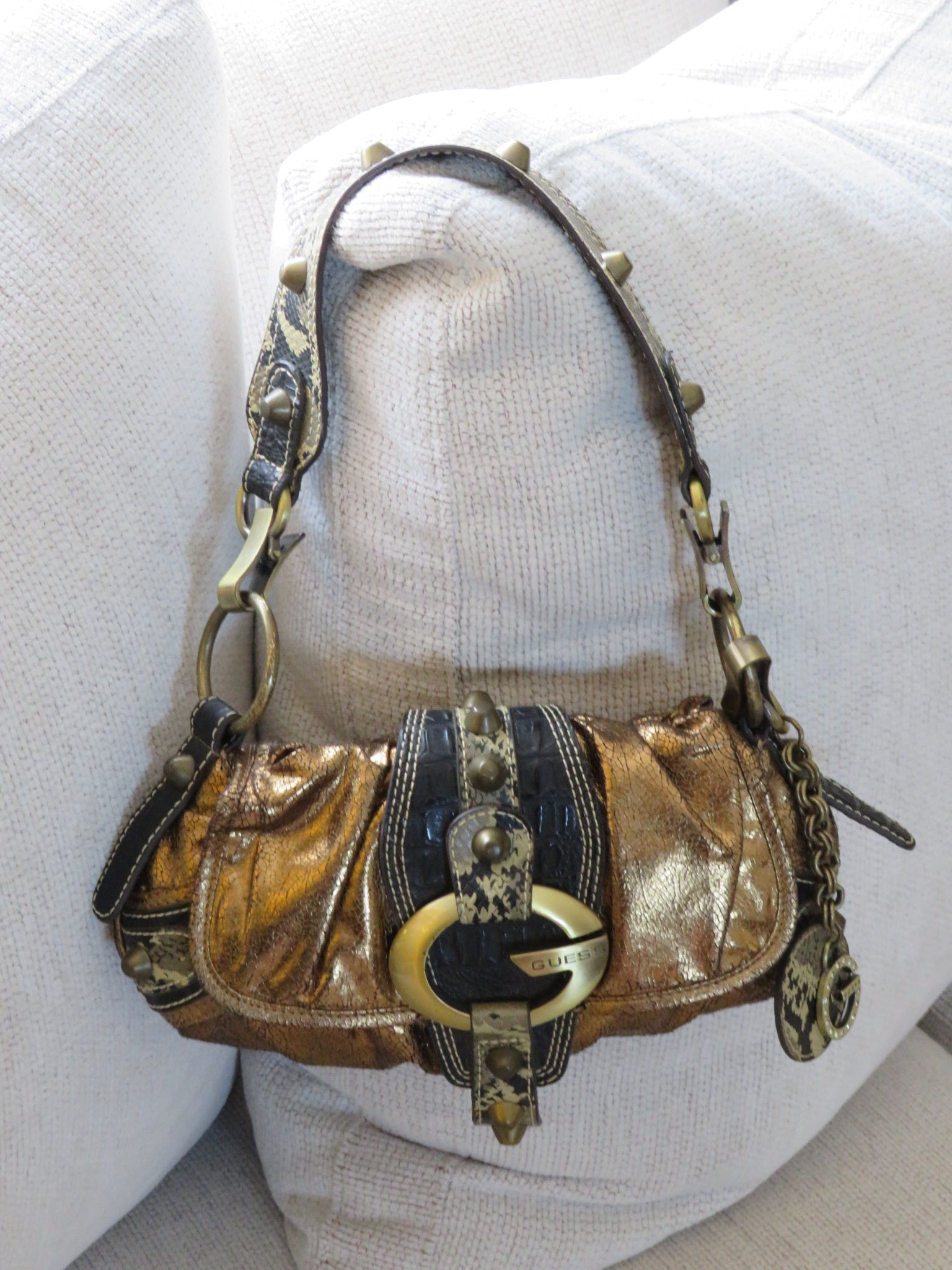 Incredible Vintage Guess bronze, croc, and studded shoulder bag
