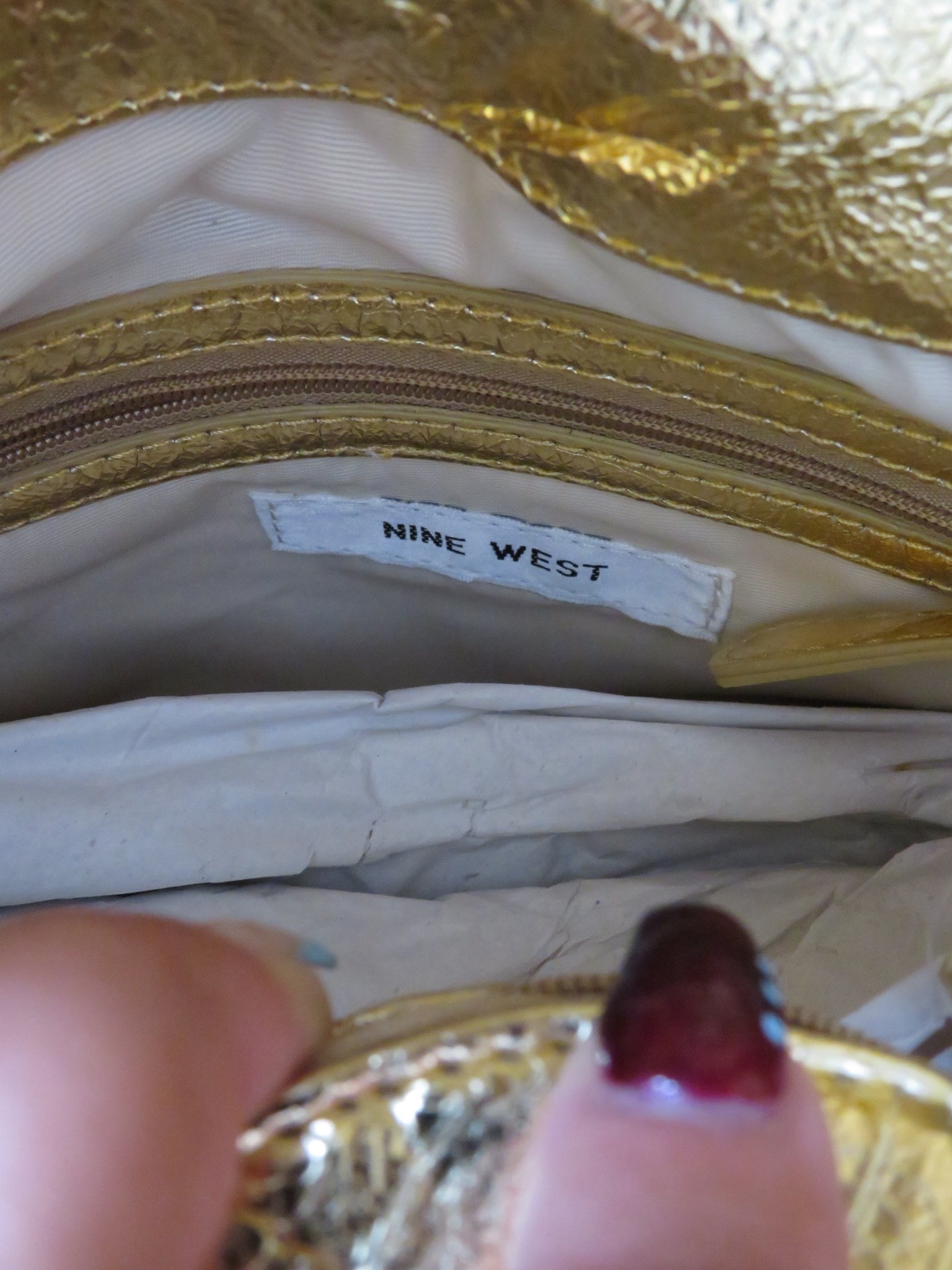 Vintage, brand new with tags, Nine West distressed leather gold metallic shoulder bag. Braided straps and gold hardware.