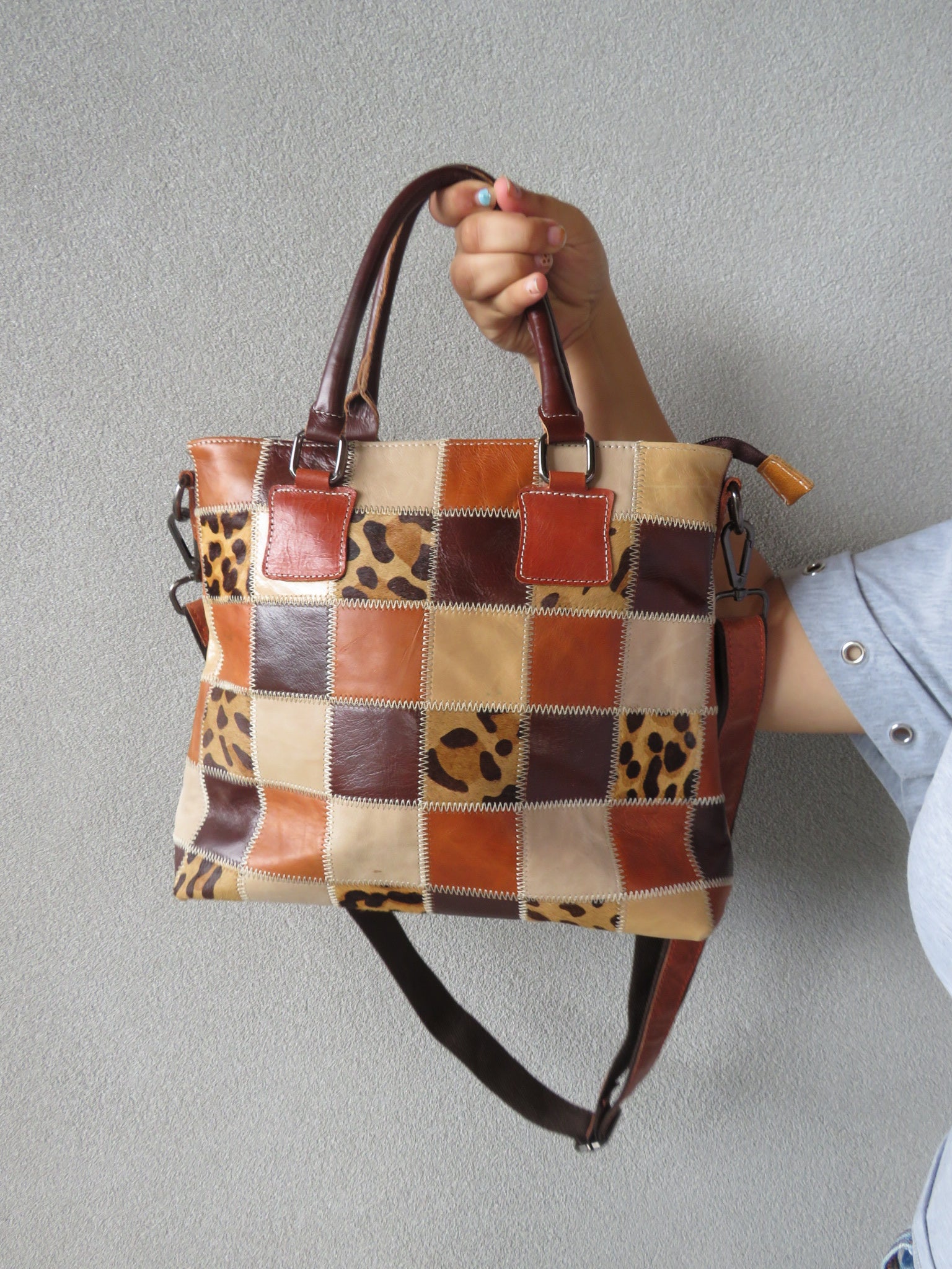 Vintage patchwork leather and animal print shoulder and crossbody bag.